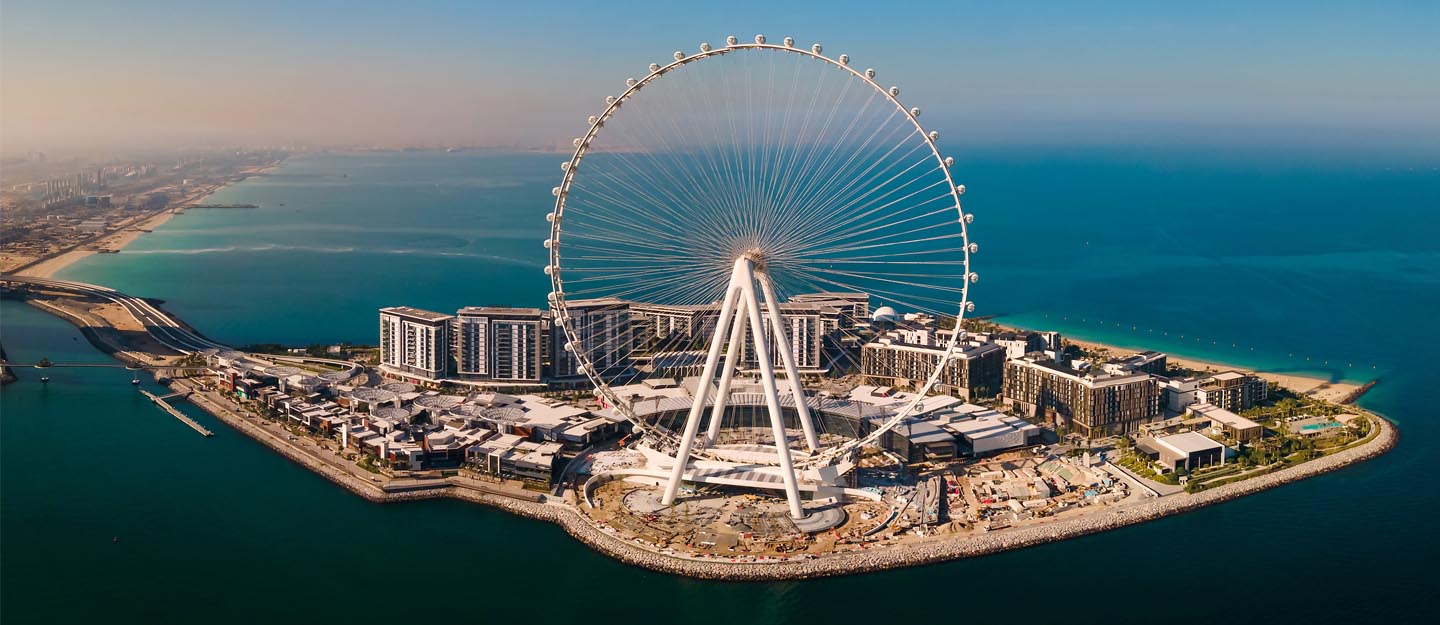 Eine der Hauptattraktionen, die Bluewaters Island zu bieten hat, ist das Ain Dubai, das größte Riesenrad der Welt.